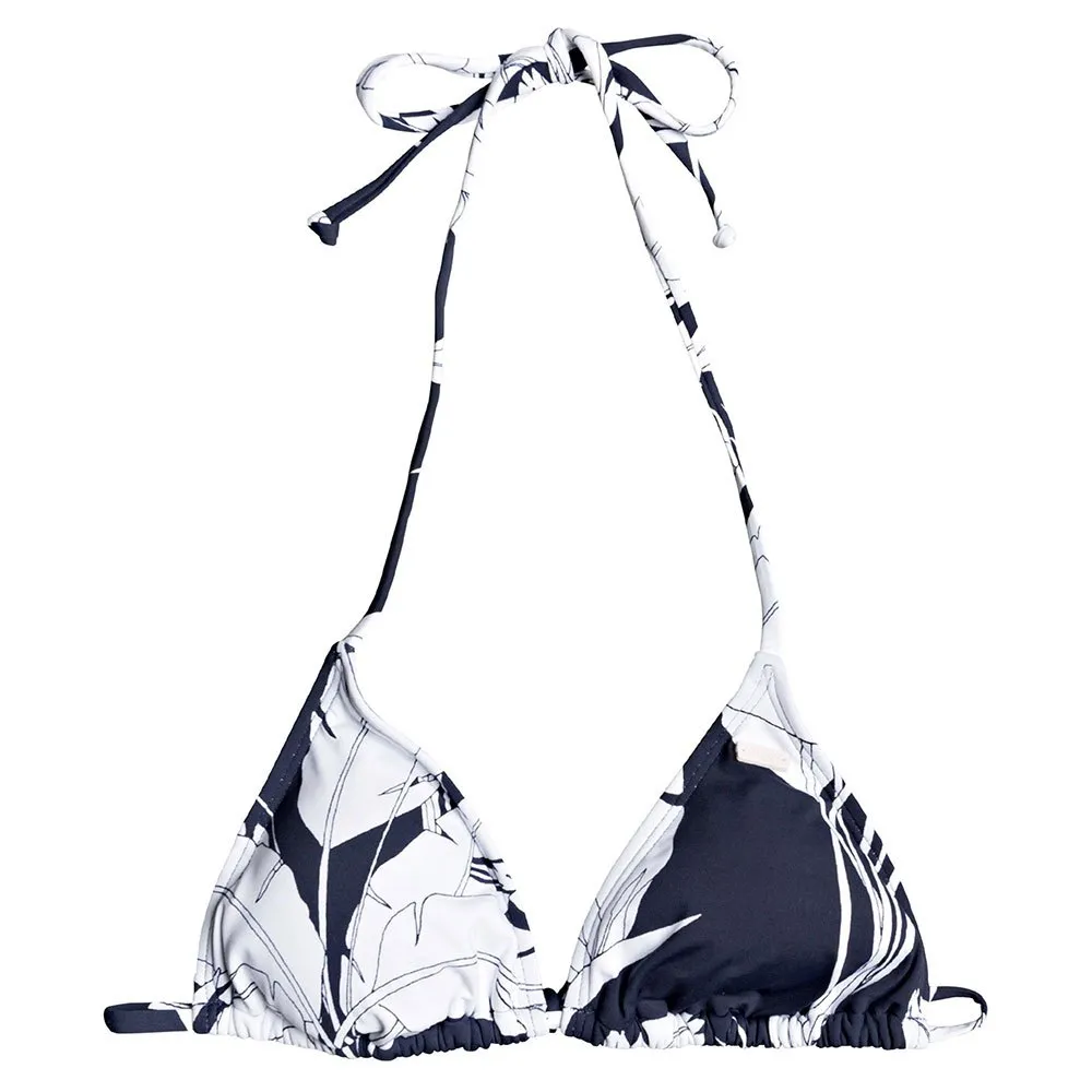 Featuring soft, resistant stretch fabric, triangle shape, and rounded out with a moderate coverage design This tiki tri bikini top for women makes a worthy addition to the ROXY Swimwear Collection.